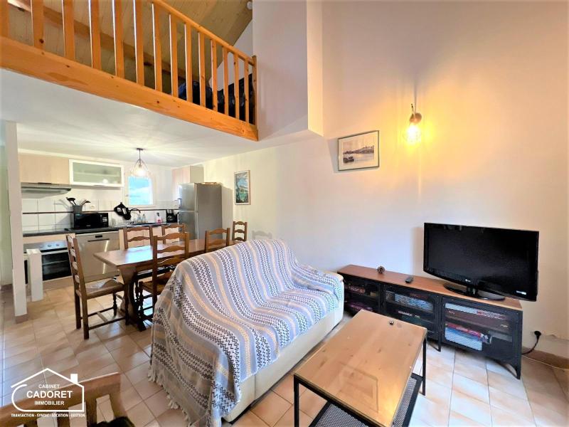 Une maison meublée T3 d’environ 60m² dans le quartier de la Birochère – Le Cabinet CADORET Immobilier vous propose à la location : A Pornic, dans le quartier de la Birochère, une maison meublée T3 d’environ 60m² comprenant une entrée sur pièce de vie, une cuisine ouverte aménagée et équipée (réfrigérateur / congélateur, four, plaques, hotte, lave-vaisselle, micro-ondes, etc…), un accès sur jardin avec terrasse, une chambre avec placard, une salle d’eau et des WC séparés. A l’étage, en mezzanine, un grand palier et une chambre. S’ajoute à cela un garage pouvant servir d’espace de stockage ou pour une moto (voiture ne passe pas). Idéalement située, proche du vieux port de Pornic, proche des plages et des commodités (U express, boulangerie, bureau de tabac,…). LOYER : 895.00€ + 15.00€ de charges de copropriété (provision soumise à une régularisation annuelle) – DEPOT DE GARANTIE : 1790.00€ – HONORAIRES à la charge du locataire : 550.00€ dont 100.00€ d’état des lieux. LIBRE AU 05 MAI 2026.