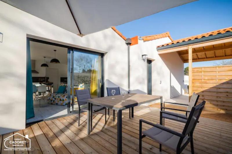 Maison T3 de 65m² à Pornic – Le Cabinet CADORET Immobilier vous propose : A Pornic, une maison T3 meublée de 65.24m² comprenant une entrée desservant un salon séjour de 29.71m² avec cuisine ouverte aménagée et équipée (réfrigérateur, plaques à inductions, four, four/micro-ondes, machine à laver), une arrière cuisine d’environ 3m², deux chambres de 11.12m² et 11.63m², une salle de bains et des WC séparés. S’ajoute à cela une terrasse en bois de 21m² ainsi qu’un carport de 16m². Le tout sur un terrain de 207m², entièrement clos. Idéalement situé, à proximité du vieux Pornic, de ces commodités, transports et plages. LOYER : 1 100.00€ + 20.00€ de provision de charges (entretien de la pompe à chaleur, soumise à une régularisation annuelle) – DEPOT DE GARANTIE : 2 200.00€ – HONORAIRE à la charge du locataire : 580.00€ dont 180.00€ d’état des lieux. Libre à partir du 02 JANVIER 2026.