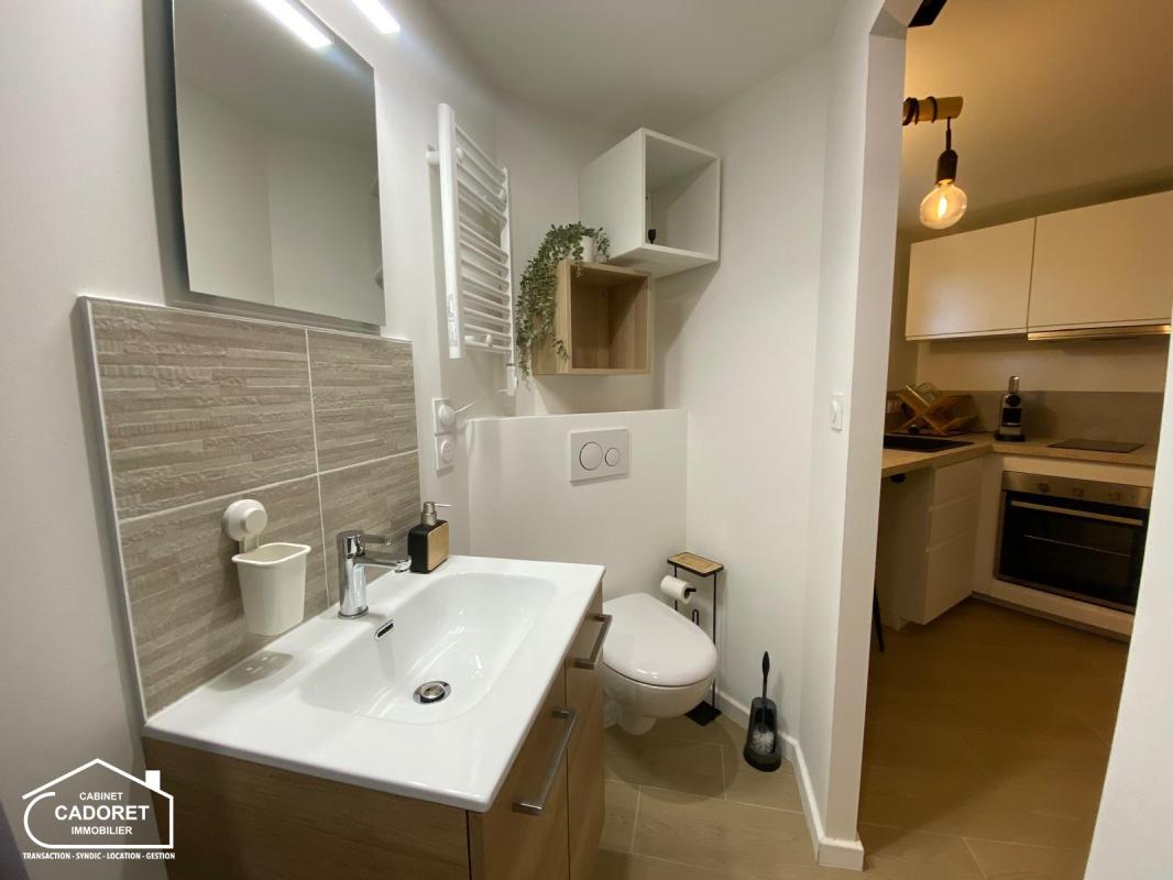 Studio Pornic centre – 17m² – Le Cabinet CADORET Immobilier vous propose : A Pornic, un appartement meublé de type 1 au rez-de-chaussée comprenant une entrée desservant sur la pièce principale, avec une cuisine aménagée et équipée, puis salle d’eau avec WC. Idéalement située, à proximité de la gare, du vieux port de Pornic et des commodités tels qu’une boulangerie, un bureau de tabac ou encore un supermarché. LOYER : 450.00€ + 50.00€ de charges (charges d’eau et d’électricité, soumises à une régularisation annuelle) DEPOT DE GARANTIE : 900.00€ – HONORAIRES : 150.00€ dont 40.00€ d’état des lieux. Libre de suite.