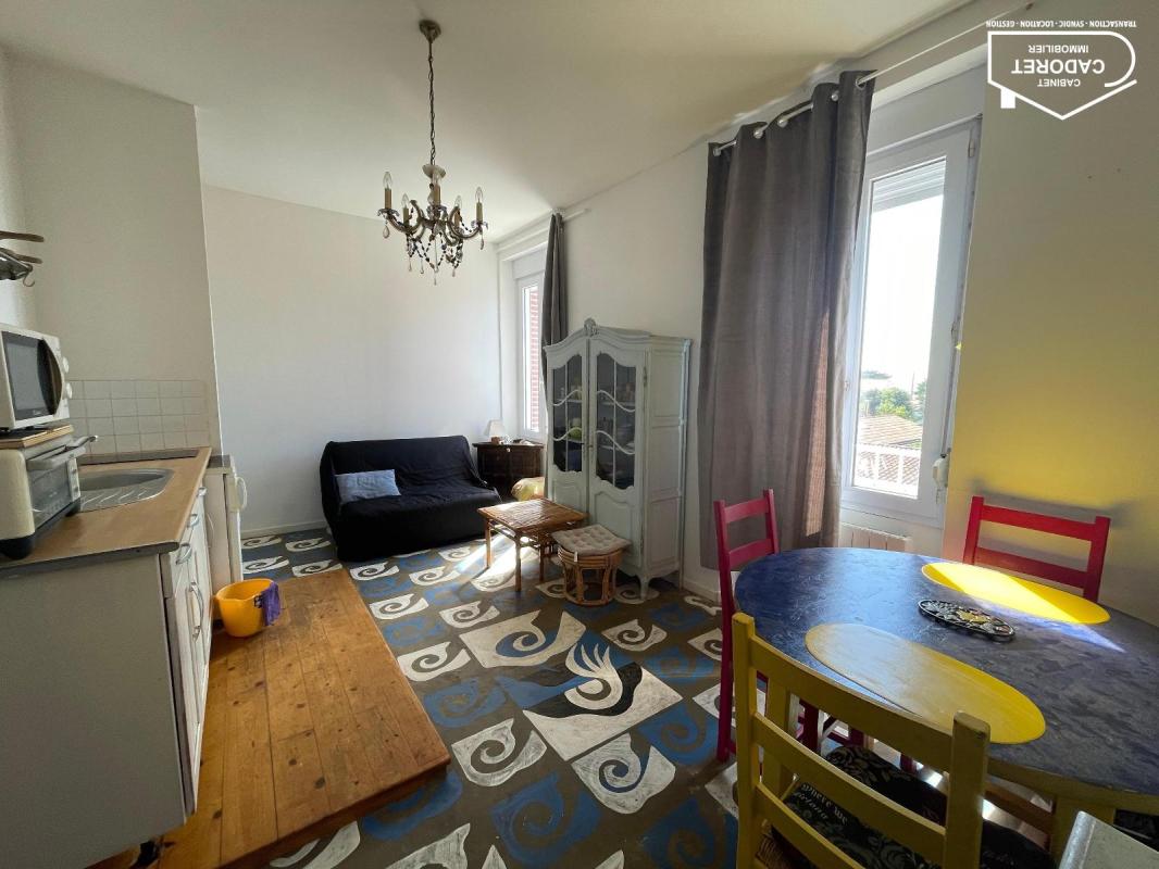 Appartement 2 pièces 31m² – Pornic – Le cabinet CADORET Immobilier vous propose : A Pornic, un appartement meublé T2 de 31.27m² au 1er étage d’une résidence. Il comprend une entrée sur salon/séjour avec cuisine ouverte aménagée et équipée (plaques, four, four micro-ondes, réfrigérateur), une chambre et une salle de bains avec WC. LOYER : 600.00€ + 15.00€ de charges de copropriété comprenant l’eau – DÉPÔT DE GARANTIE : 1 200€ – HONORAIRES : 248.00€ dont 50.00€ d’état des lieux. Idéalement situé, à proximité des commodités. LIBRE.