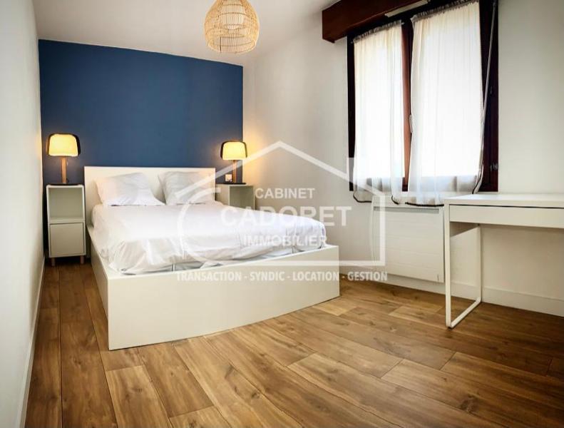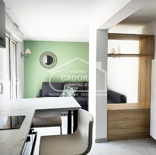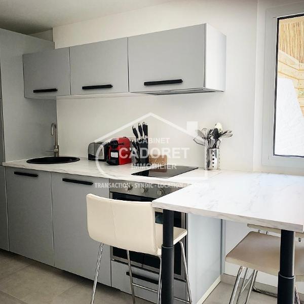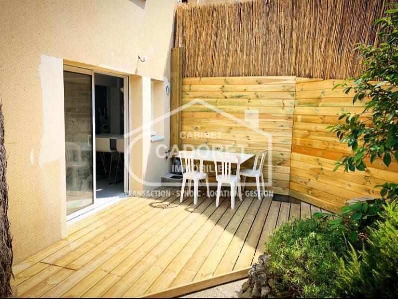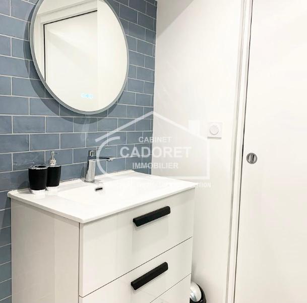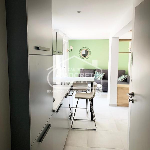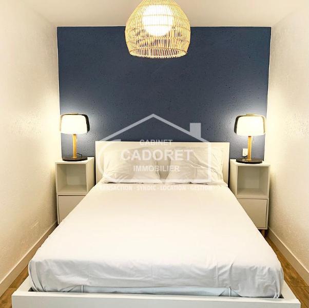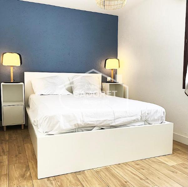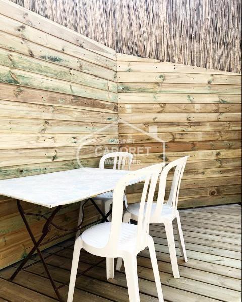 Appartement T2 de 35m² à Pornic – Le Cabinet CADORET Immobilier vous propose : A Pornic, un appartement T2 de plain-pied meublé, de 35m² comprenant une entrée sur pièce de vie, une cuisine ouverte aménagée et équipée (plaques inductions, hotte, four, réfrigérateur/freezer, machine à café, grille-pain, machine à laver), un espace salon avec canapé et TV, un accès sur une terrasse avec salon de jardin, une chambre avec lit double et placard et une salle d’eau avec WC. Idéalement située, à proximité de la gare, du vieux port de Pornic et des commodités tels qu’une boulangerie, un bureau de tabac ou encore un supermarché. LOYER : 650.00€ + 15.00€ de charges (charges d’eau soumises à une régularisation annuelle) DEPOT DE GARANTIE : 1300.00€ – HONORAIRES : 440.00€ dont 120.00€ d’état des lieux. LIBRE AU 21 OCTOBRE.